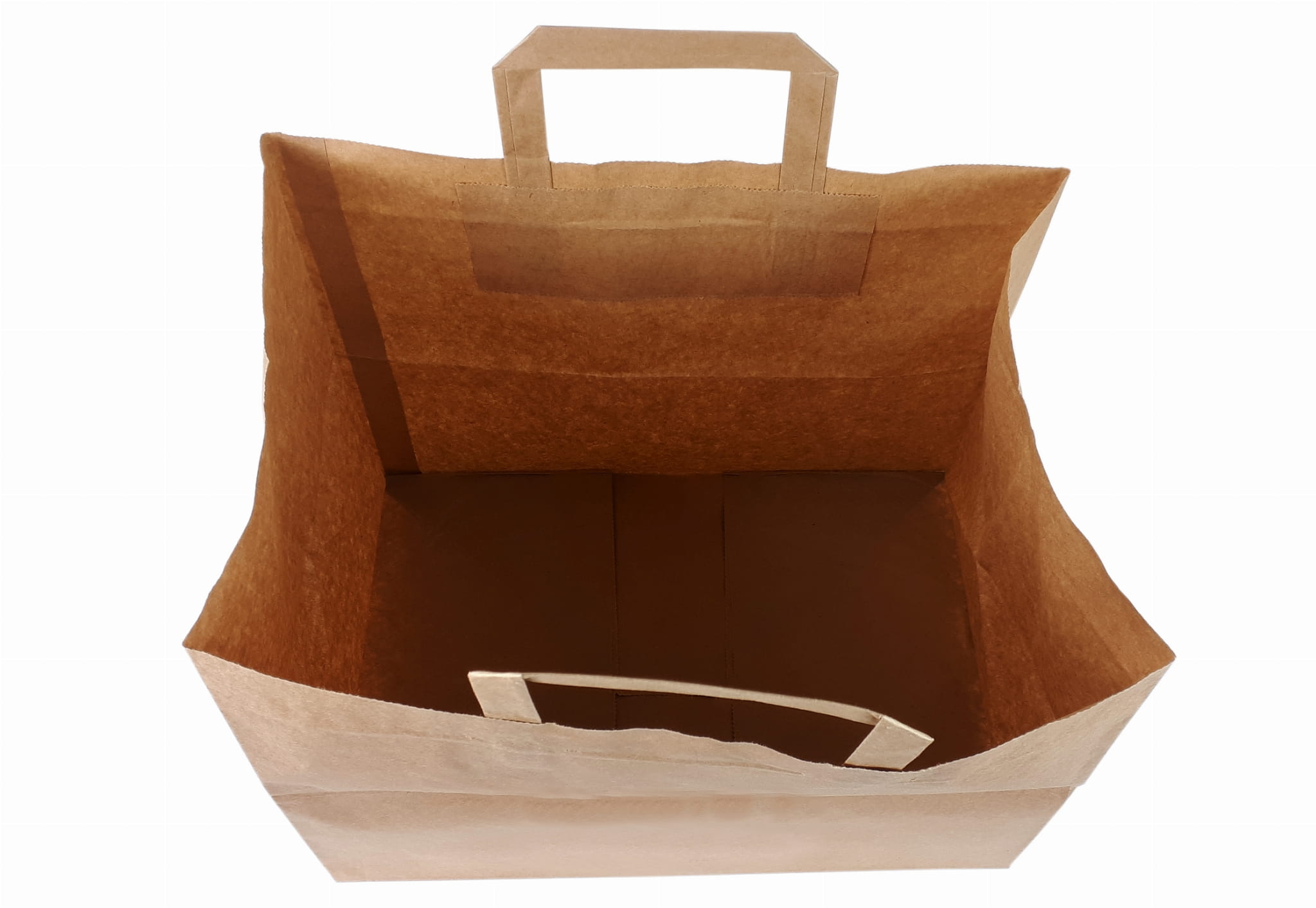 Ekologiczne torby papierowe z płaskim uchwytem w kolorze brązowym. Oferowany rozmiar idealnie nadaje się do celów spożywczych lub też do pakowania innego rodzaju produktów.